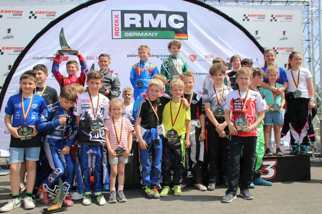 Max Moor und Dimitar Lazarov (C4 Racing) diktierten das Geschehen bei den Jüngsten der RMC Germany. Im Zeittraining, den Heats und im Superheat wechselten sich beide mehrfach an der Spitze ab. Folglich sollten die beiden Favoriten auch den Sieg im Finale unter sich ausmachen. Doch es kam anders: Im Kampf um die Führung kollidierten Moor und Lazarov, flogen von der Strecke und mussten alle Träume vom Sieg begraben. Davon profitierte Jonathan F. Ottosen (Tony Kart), der letztlich als Erster den Zielstrich kreuzte und Maximilian Kiel (Forty-Two Competiton) und Connor Haufe (C4 Racing) auf die Plätze verwies.